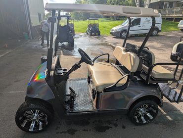 Central Minnesota's best destination for golf cart sales and custom cart upgrades. We specialize in buying off lease fleet carts and customizing them to look like new for a fraction of the price of new. We also perform service on all American made golf carts and are happy to discuss working on other carts. Our prices on lithium battery conversions are the best in Minnesota! For available inventory, check our current inventory page or Facebook. For customization, give us a call!